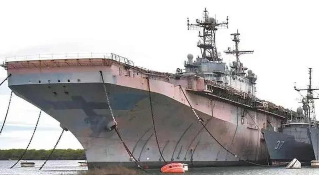 ◇ 图为“环太平洋-2024”多国海上联合演习中作为靶舰的4万吨级“塔拉瓦”号两栖攻击舰