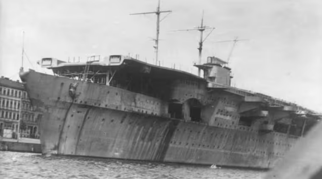 为了找到对付航母的方法,苏联人相中了纳粹德国建造的齐柏林号航母,它在二战中就已经建造完毕,因为多方面原因始终没投入使用,在二战结束时自沉于什切青,随后被苏军打捞上来,1947年苏联人决定拿它开刀,看看击沉航母到底该是怎样的打法。从8月开始,苏军先在航空母舰舰体上进行了几次爆破,然后又出动了一个航空团的轰炸机,轮流对齐柏林号进行投弹。