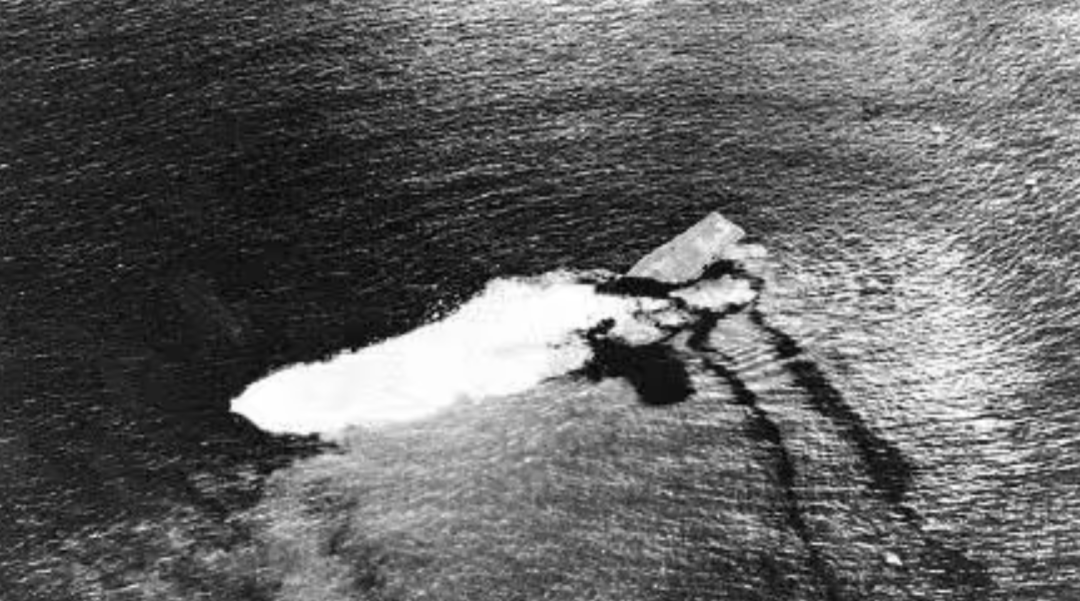 ◇ 图为参加实验的萨拉托加号航母和沉没中的萨拉托加号
