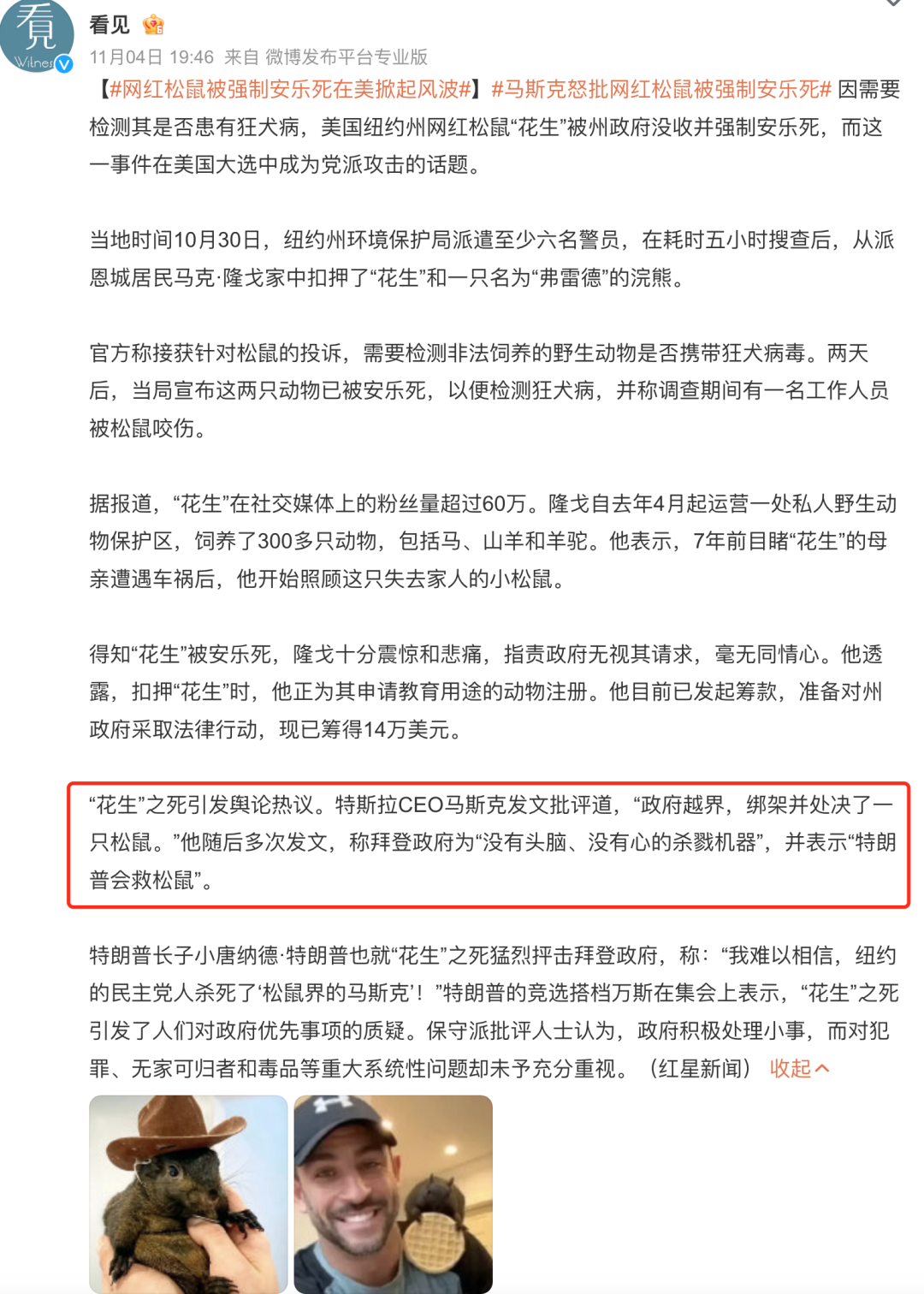 今天接着聊聊刚刚过去的美国大选,不知道各位是否注意到大选期间的一个新闻,纽约州有一只松鼠,主人拿它拍段子已经攒了几十万粉丝。