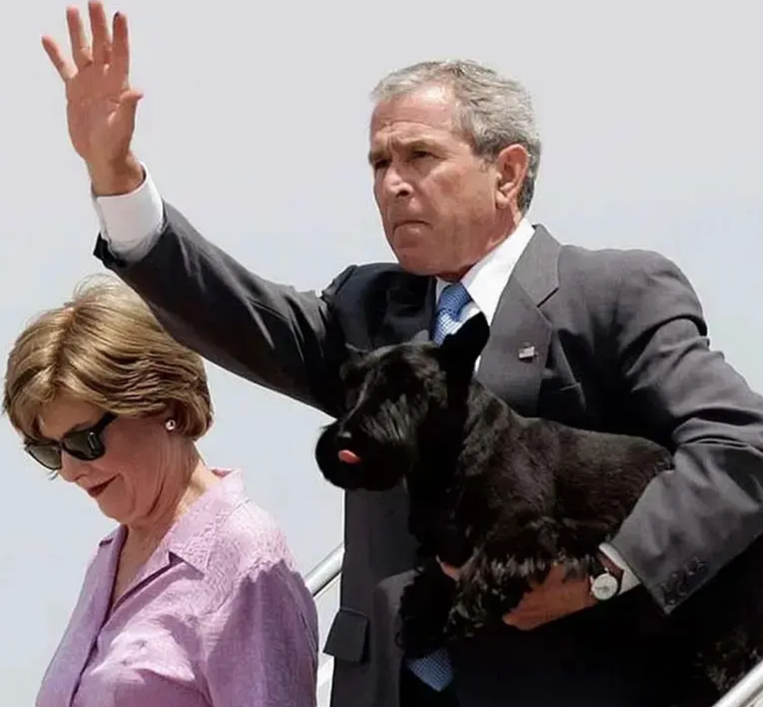 ◇ 图为小布什夫妇和他们的宠物狗巴尼