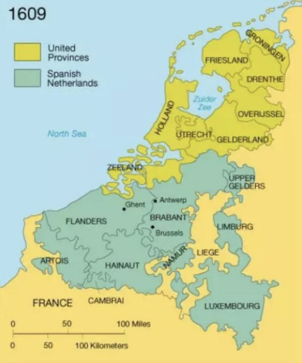 ◇ 图为南部为西属尼德兰,处于西班牙的保护之下