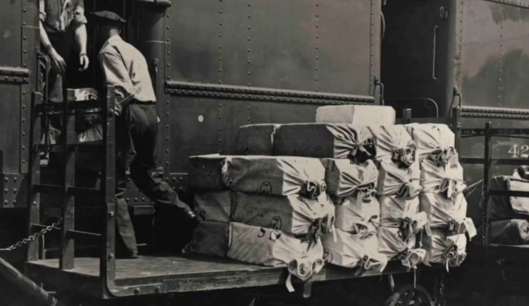◇ 图为美国早期铁路大件邮件运输