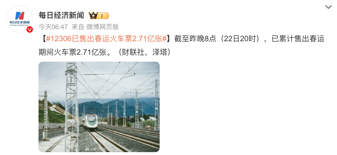 ◇ 图为25年春运火车票已售出2.71亿张