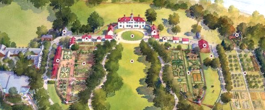 ◇ 华盛顿的佛农山庄鼎盛时期总面积达到8000英亩(大约3237公顷),如今只遗留下来500英亩 图为华盛顿佛农山庄复原图
