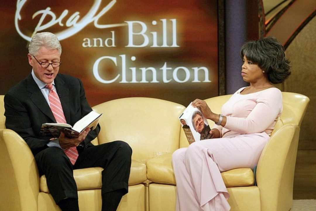 ◇ 图为美国前总统克林顿在美国著名电视节目《奥普拉秀》上朗读其自传《我的生活》