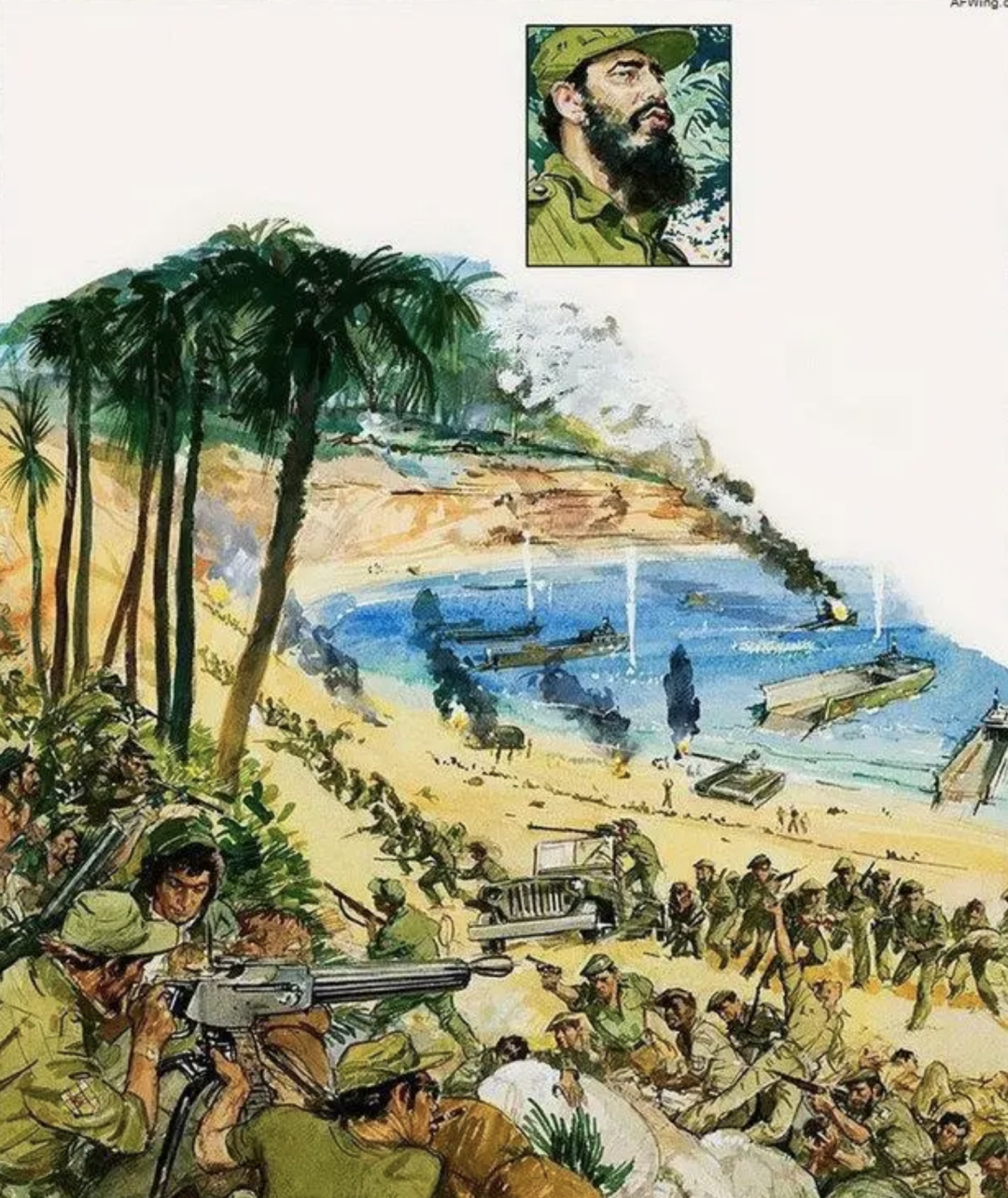 ◇ 猪湾登陆中大约300人被打死,1000余人成为俘虏,在美国古巴族裔和政治团体的游说下,美国政府花费5000多万美元赎回了这些俘虏 图为猪湾登陆复原画