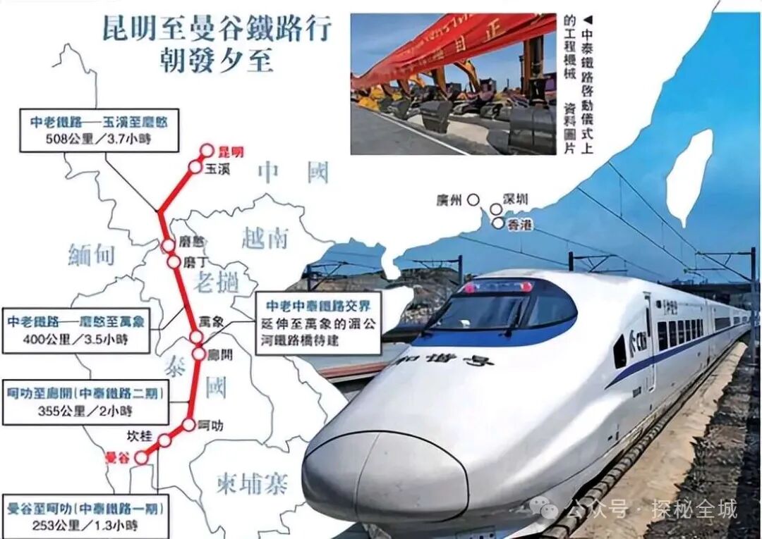 其中,东线经越南、柬埔寨连通泰国,中线经老挝连通泰国,西线经缅甸连通泰国,三条线最终都在泰国交汇;