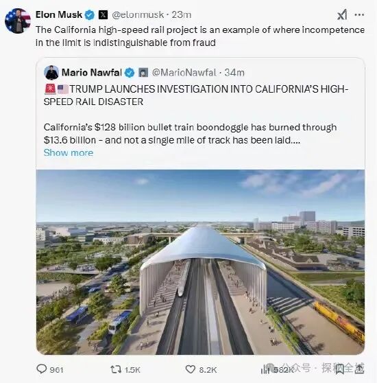 也难怪马斯克要发飙,痛批加州高铁项目“极限的无能”,“与欺诈无异”,要知道,他领导的DOGE,全称叫“美国政府效率部”;