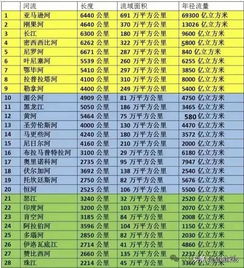 从三项数据来看,密西西比河基本上都能位居所有世界大河前列: