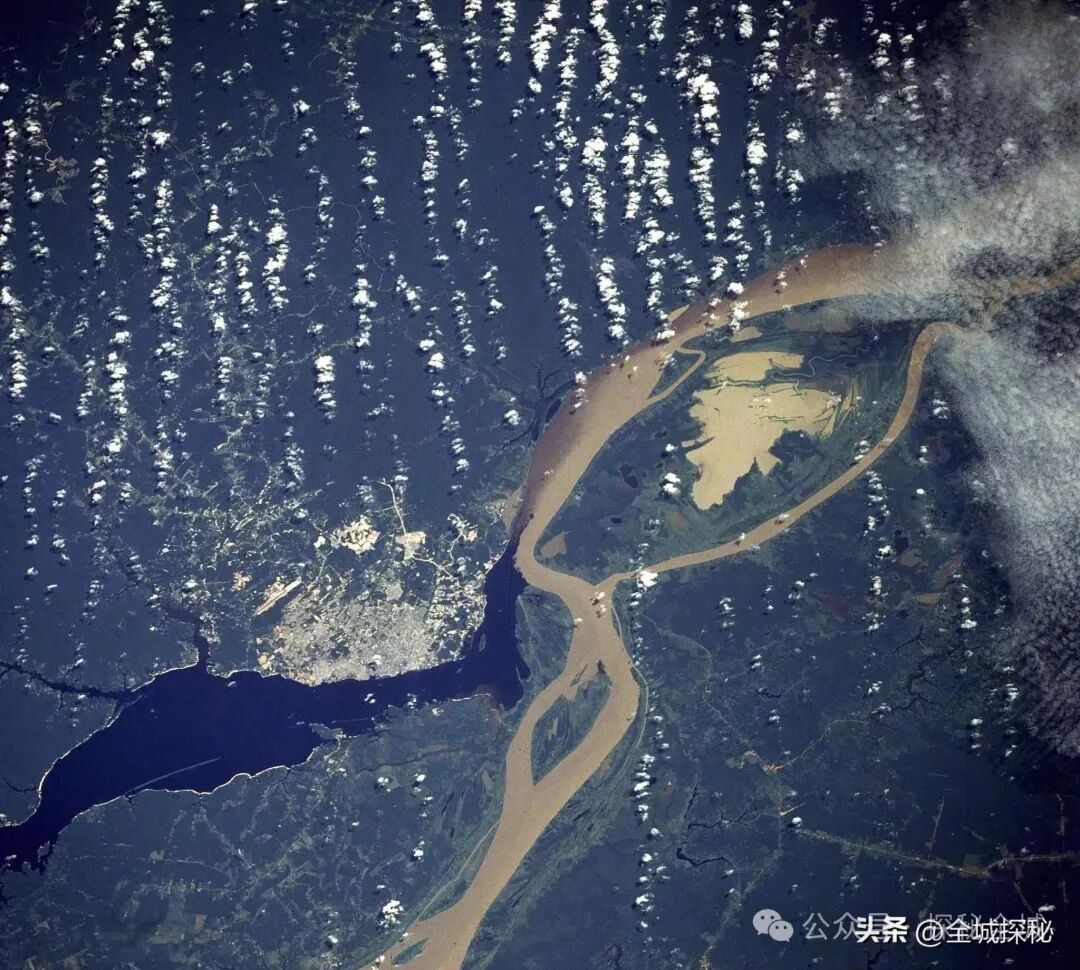 混浊的密苏里河河水与清澈的密西西比河河水,甚至在二者交汇处以下100多公里的河段还能清晰地分辨出;
