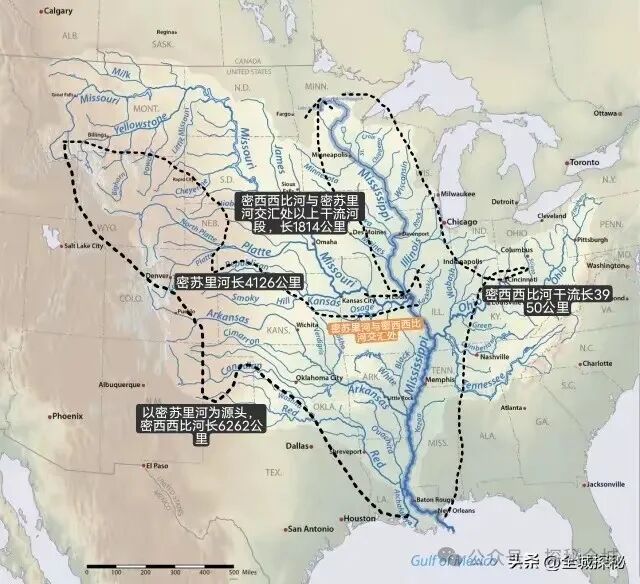 我们今天看到的很多资料中,都把密西西比河的长度标注为6262公里,这个长度其实是按照其支流密苏里河计算出来的;