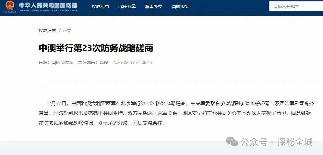 不止如此,遵义舰编队出现在澳大利亚海域附近后,澳大利亚还主动跟我国进行第23次防务战略磋商,2月18日,澳国防军副司令齐普曼、国防部副秘书长杰弗为首的军方代表团到访中国,就两军关系和地区安全等关切问题达成三项共识,并强调双方要妥善管理分歧,强化战略沟通;