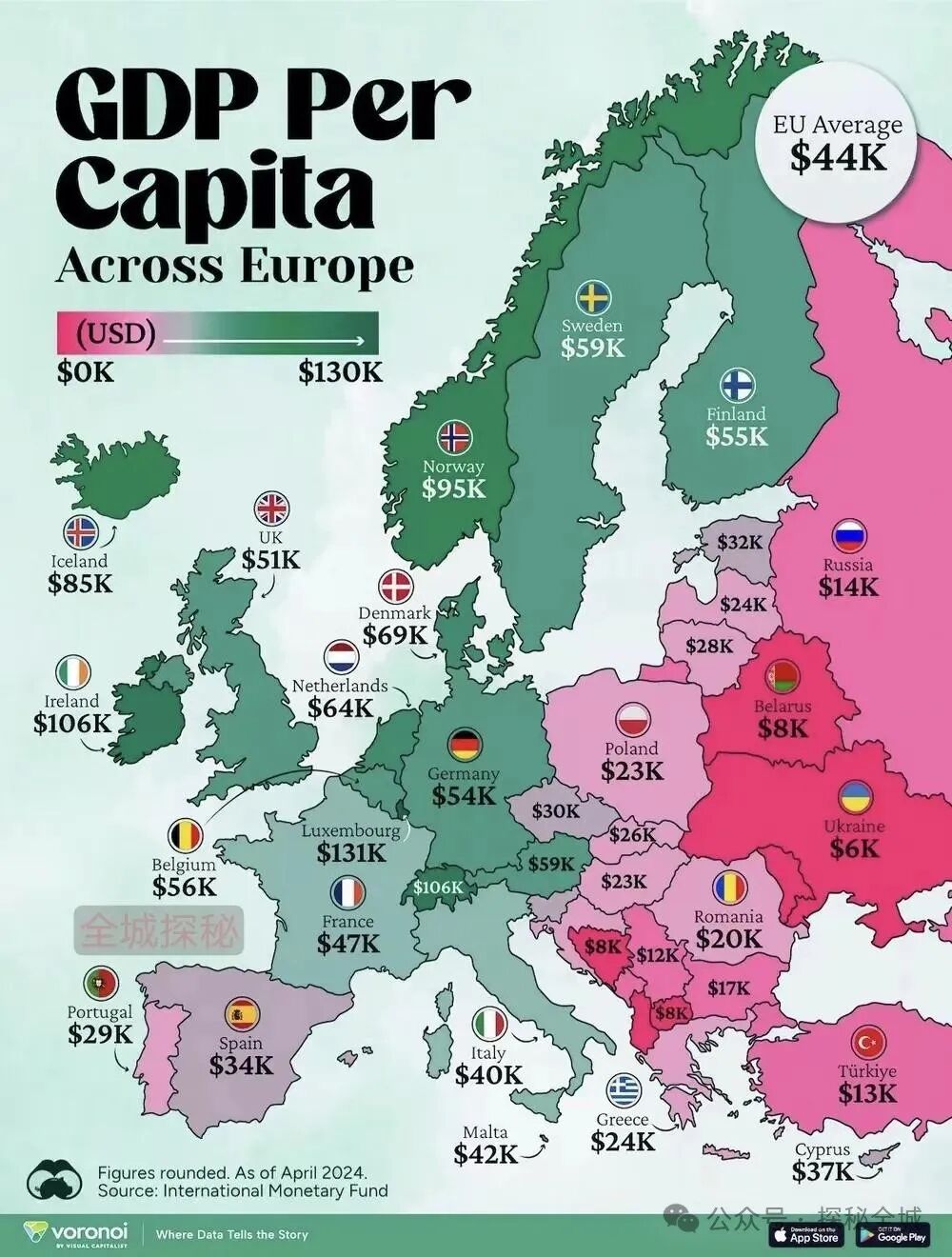另一方面,西班牙虽属于经济发达国家,但其经济水平在欧盟同样也不算突出,最明显的一点是,截止2024年,西班牙全国人均GDP只有3.4万美元,比英法德意四大强国以及北欧各国都要低不少;