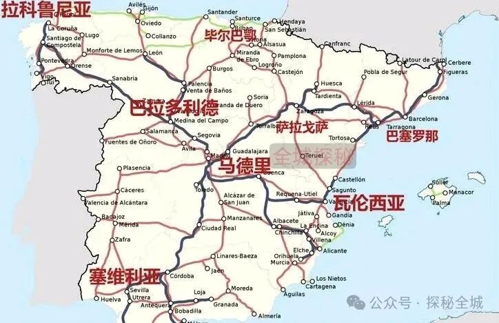 第一,西班牙地势复杂,需要构建完善的交通网络连通全国。
