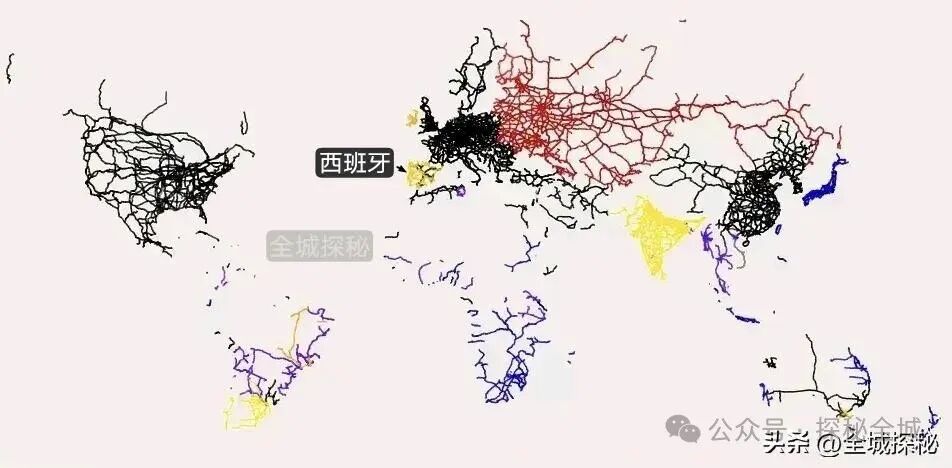 接下来再说说高速铁路,西班牙的高速铁路网,估计会更让人意外,其全国铁路总长度也才1.6万公里,其中高速铁路里程就超过4000公里;