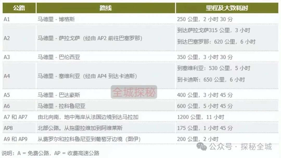 此外,西班牙的高速公路又分为免费的A字高速以及收费的AP高速,二者通常相邻且平行分布,可供人自由选择。