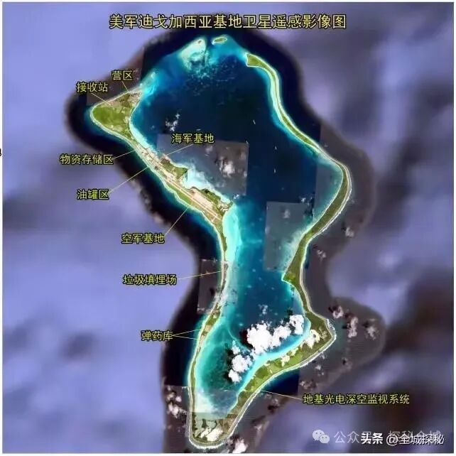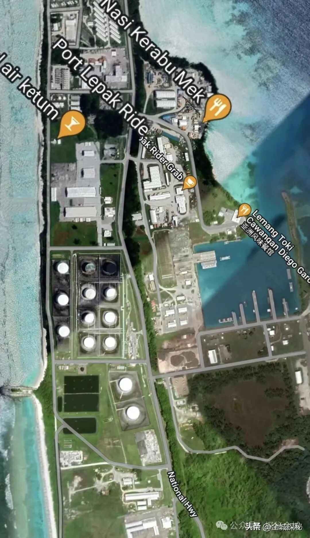 此外,迪戈加西亚岛上还拥有各种军事物资储备,通信站、深空监测系统乃至兵营油库等设施一应俱全。