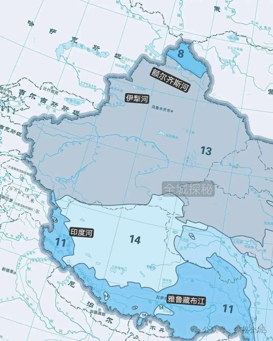比如在西北方向,额尔齐斯河、伊犁河等穿过中哈边境流入了哈萨克斯坦,在西南方向,印度河、恒河、雅鲁藏布江等河流穿过国境流入南亚,独龙江、怒江、澜沧江以及红河等流入了东南亚;