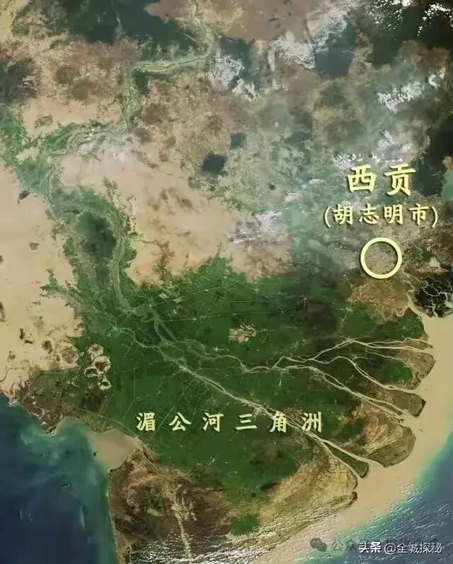 在湄公河三角洲上的是胡志明市,面积2090平方公里,人口高达1200万,是越南全国的经济中心、第一大城市和港口。
