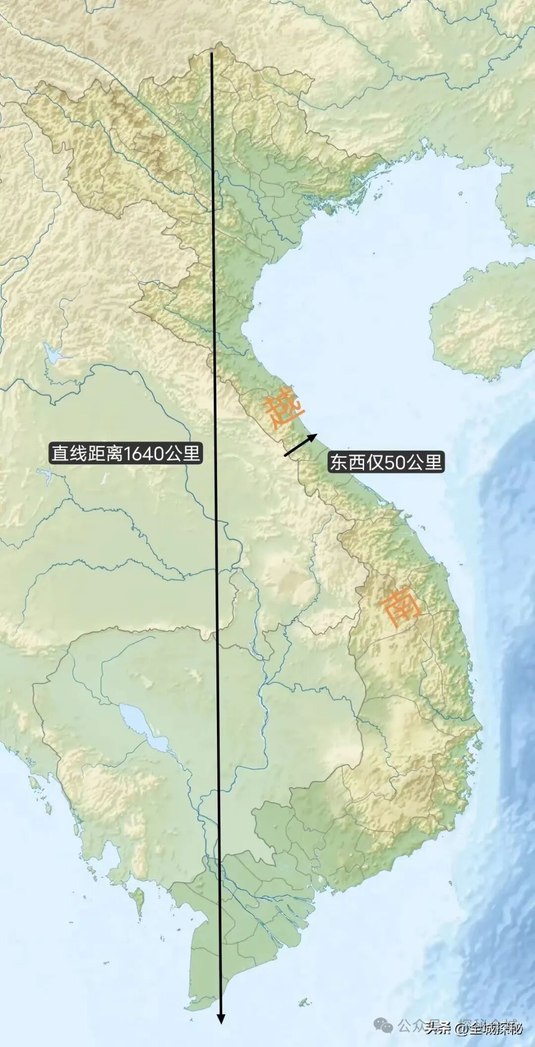 与此同时,在东西方向上,越南最宽处也才600公里,最窄处甚至只有50公里,相当广州市区到东莞的直线距离。