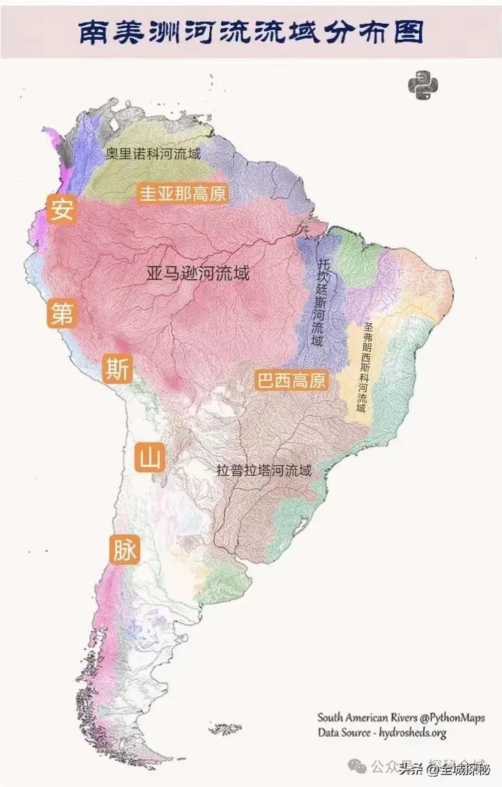 3.如果以年径流量合计排名,安第斯山脉凭借一条亚马逊河,就力压其他所有水塔排名第一,年径流量高达69300亿立方米;