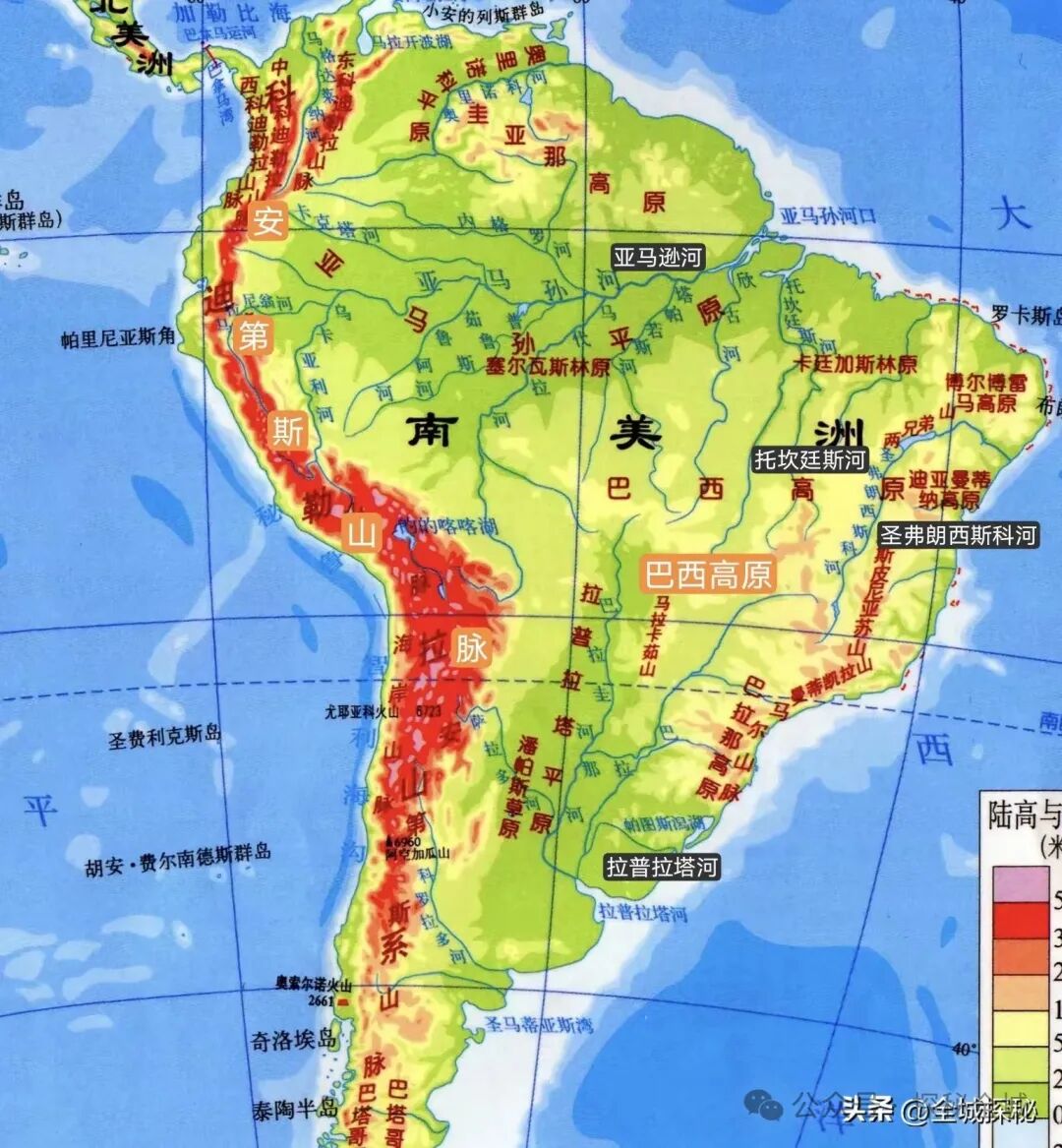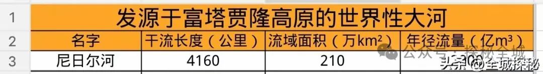 最后是安第斯山脉、圭亚那高原、富塔贾隆高原和阿尔卑斯山脉,都是1条世界性大河。