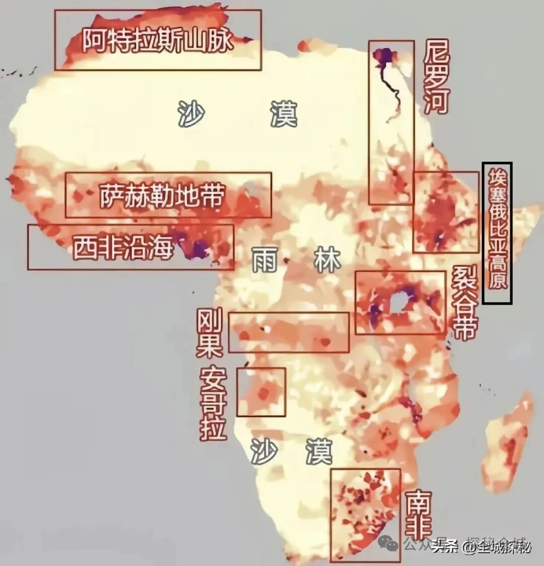 另一方面,埃塞俄比亚高原的位置也很有意思,地处非洲大陆东北角,除了西侧之外,其他三个方向距离海洋都很近;