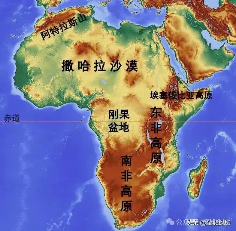 再往下是巴西高原和东非高原,各有3条世界性大河源头;