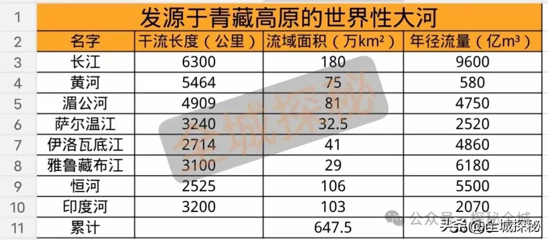 整体上,以青藏高原为源头的这8条世界性大河,流域面积加起来达到647.5万平方公里,年径流量加起来达到36060亿立方米。