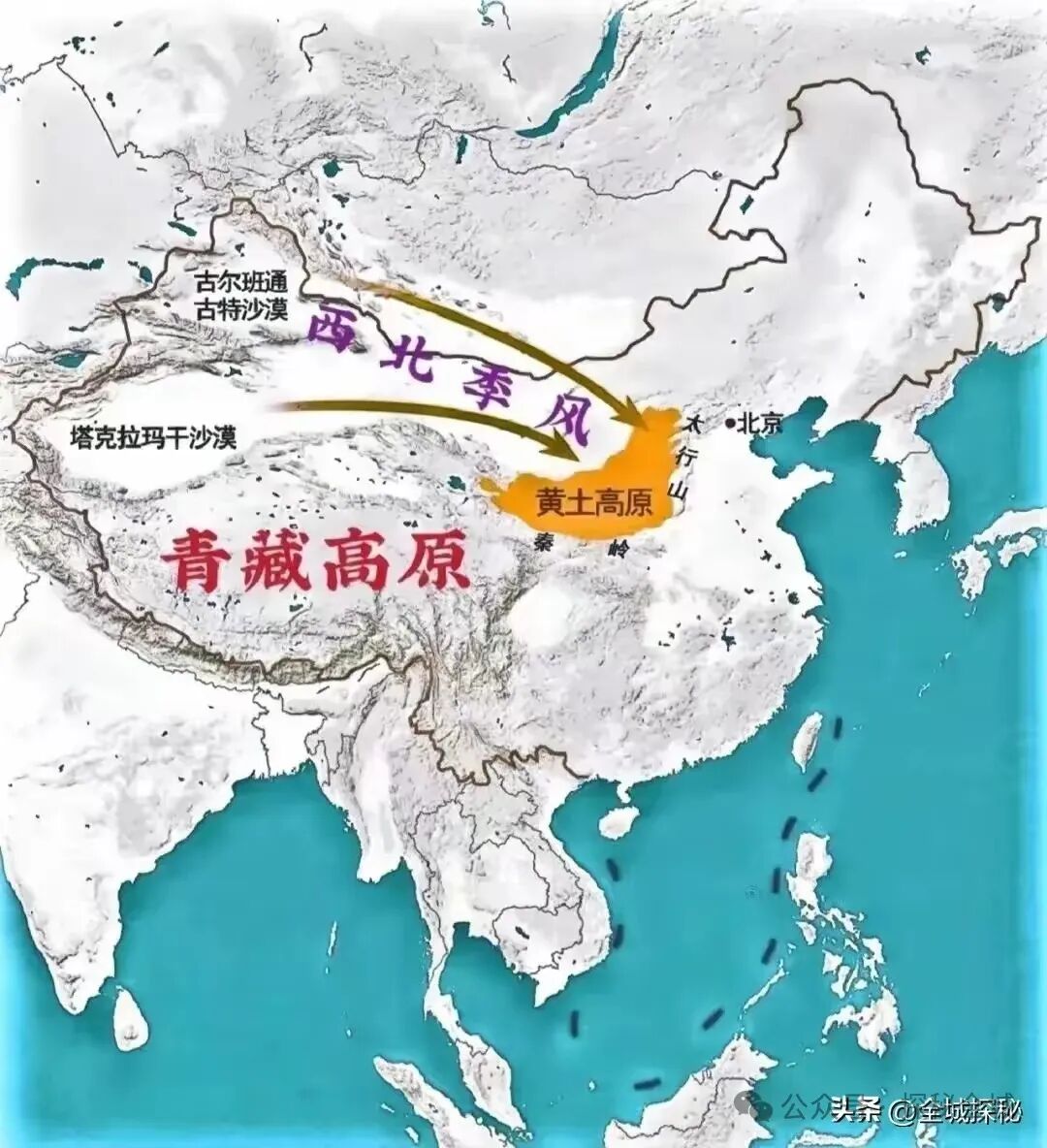 我们都知道,黄河的泥沙主要来自黄土高原,关于黄土高原成因,一个比较被认可的说法是,更西边的沙漠被强风吹起,大量沙尘向东飘散,被太行山等山脉拦下后堆积形成;