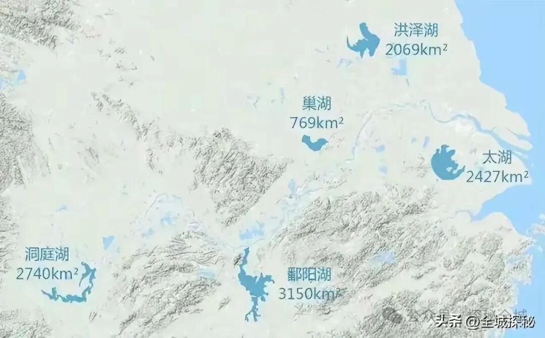而我国的五大淡水湖泊,面积最大的鄱阳湖也才3000多平方公里,其他四个,洞庭湖、太湖、呼伦湖以及洪泽湖,面积都在2000-3000平方公里之间。