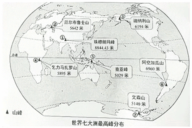 七大洲最高峰分布图