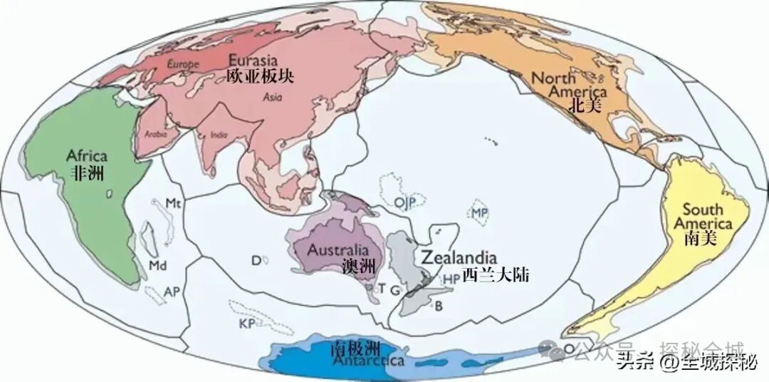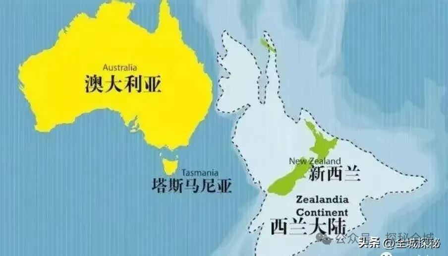 科学家推测,在大约1亿-8000万年前,澳洲大陆、南美大陆以及非洲大陆分离出去时,西兰大陆也一同分出;