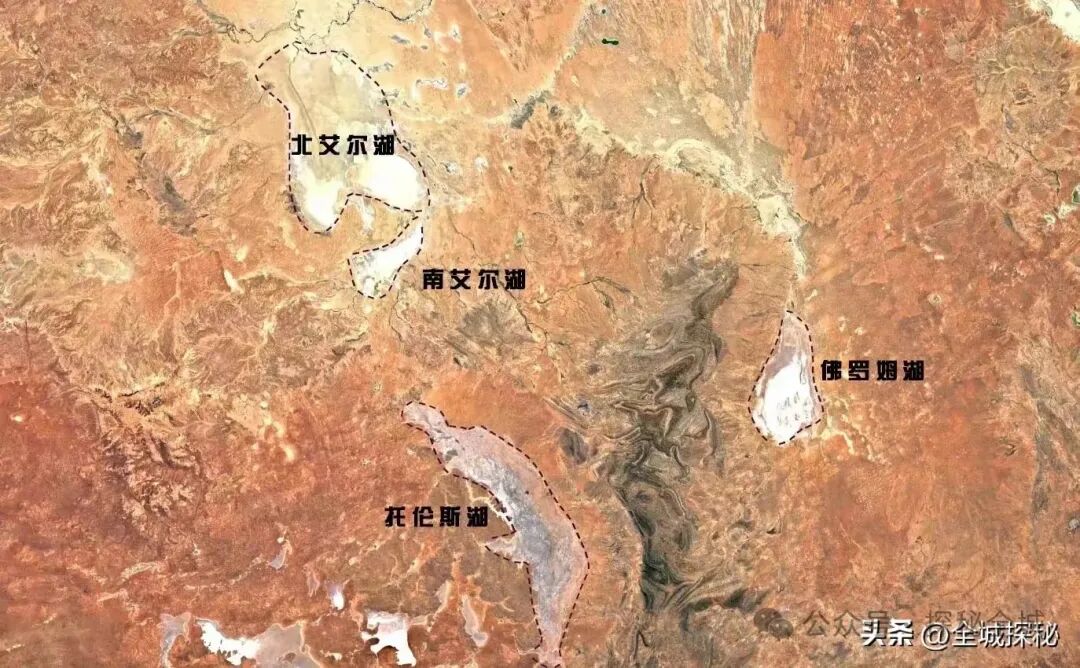 最大湖泊艾尔湖虽然名义上面积超过9000平方公里,但大部分时间都是干涸状态,几乎可以直接忽略;