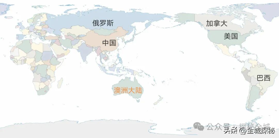 不止如此,澳洲大陆作为一块大陆,面积居然还小于5个国家,其中俄罗斯面积达到1710万平方公里,是澳洲大陆的2.2倍以上,加拿大997万平方公里,中国960万平方公里,美国937万平方公里,巴西851万平方公里……