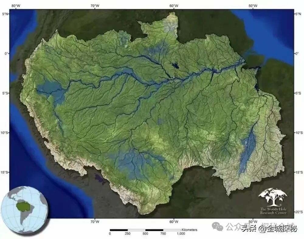 因此,地势低平的亚马逊平原,实际上更像是一个大盆地,地形相对封闭,所以周边的河流才得以流向中间的低洼区域,并形成亚马逊河。