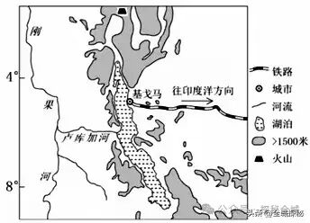 1.刚果河和亚马逊河同处于赤道附近的低纬度地区,刚果河源头位于坦葛尼喀湖东南,地处南纬10度附近,干流河道两次穿越赤道,入海口在金沙萨西南,地处南纬5度附近;