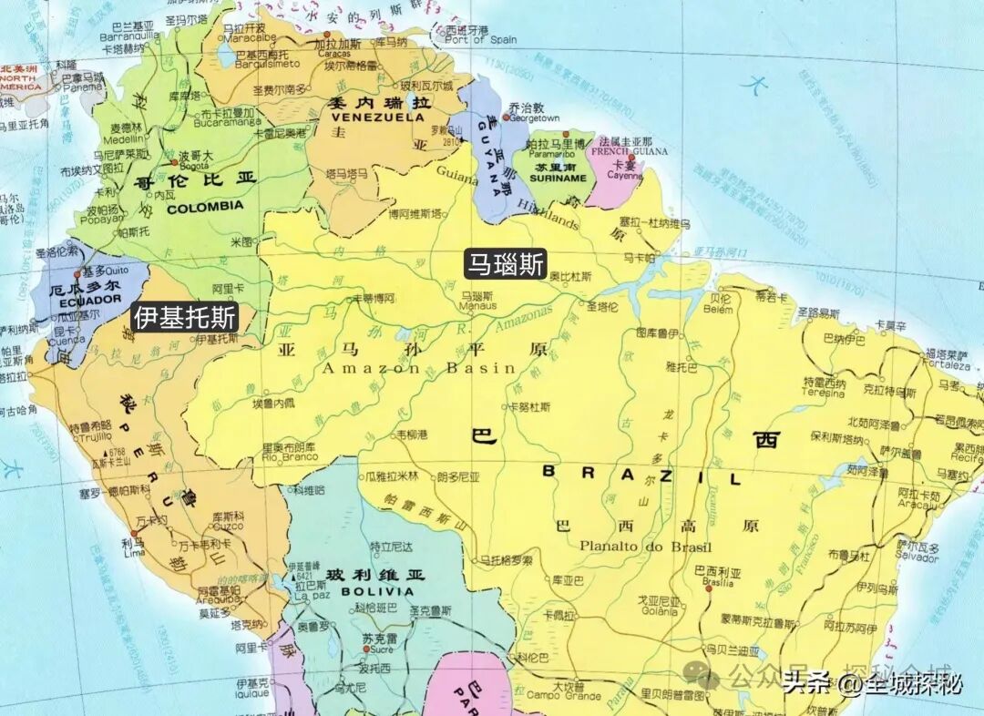 比如位于亚马逊河上游的秘鲁城市伊基托斯,地处安第斯山脉附近,距离大西洋还有3700公里,但平均海拔只有104米,而中游的巴西城市马瑙斯,跟大西洋的距离也有1600公里,平均海拔为44米。