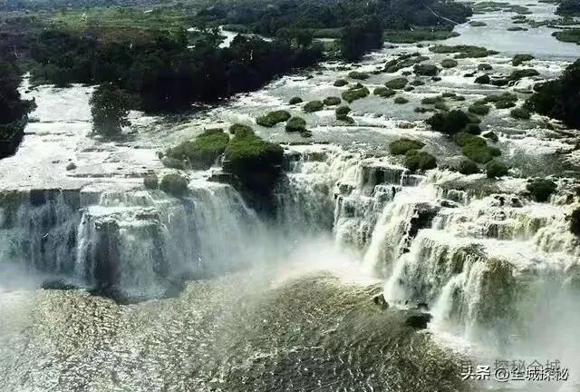 以博约马瀑布群为例,在刚果河长约100公里的河道上分布着7个瀑布,最宽可以达到800米,累计落差70米;