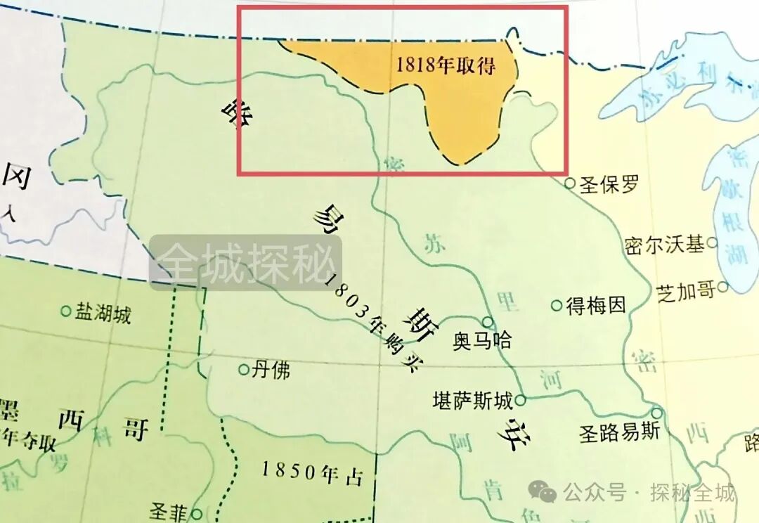 而美国也不是完全对加拿大领土没有野心,虽然图谋五大湖以北区域没有成功,但在西侧却占领了大片原属加拿大的土地;