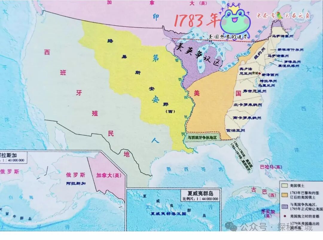 1.英国虽然承认密西西比河以东区域归属美国,但其军队仍然驻扎在密西西比河上游以东地区,一直到1794年,两国签订《杰伊条约》,英军才撤出这片区域;