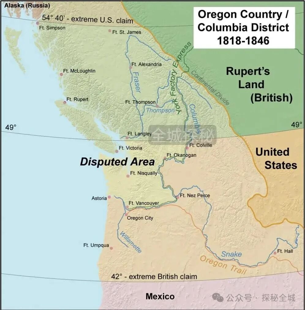 即使《拉什-巴戈特协定》规定俄勒冈地区由英美共管,彼时的西班牙和俄罗斯也没有承认,一直到1819年和1824年,两国先后退出,英国和美国才彻底获得这片区域的控制权。