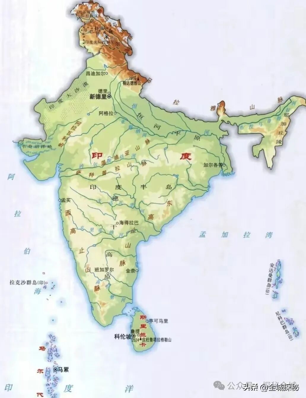 印度地形图,南部河流不少,但都是中小型河流
