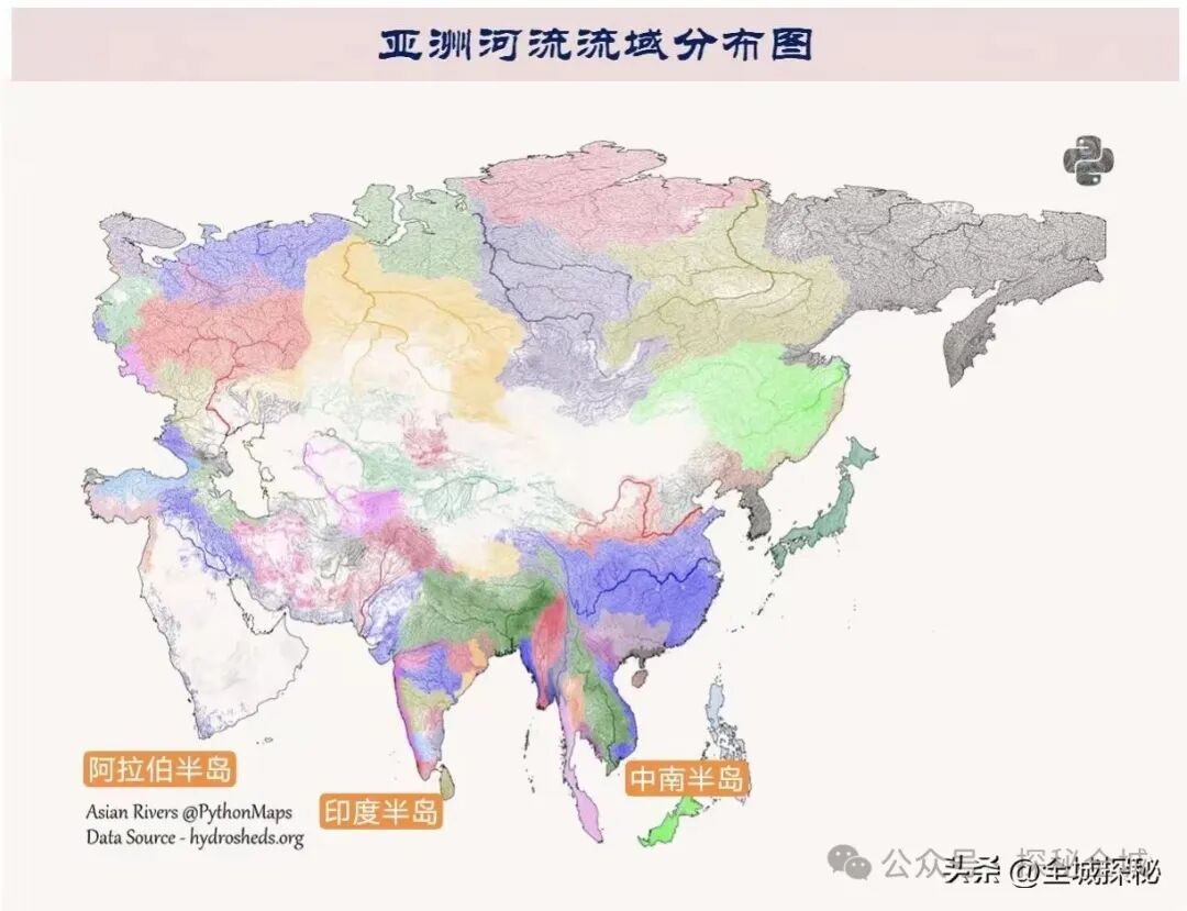 南亚地区的几条世界性大河,位置都比较偏北,不属于印度半岛