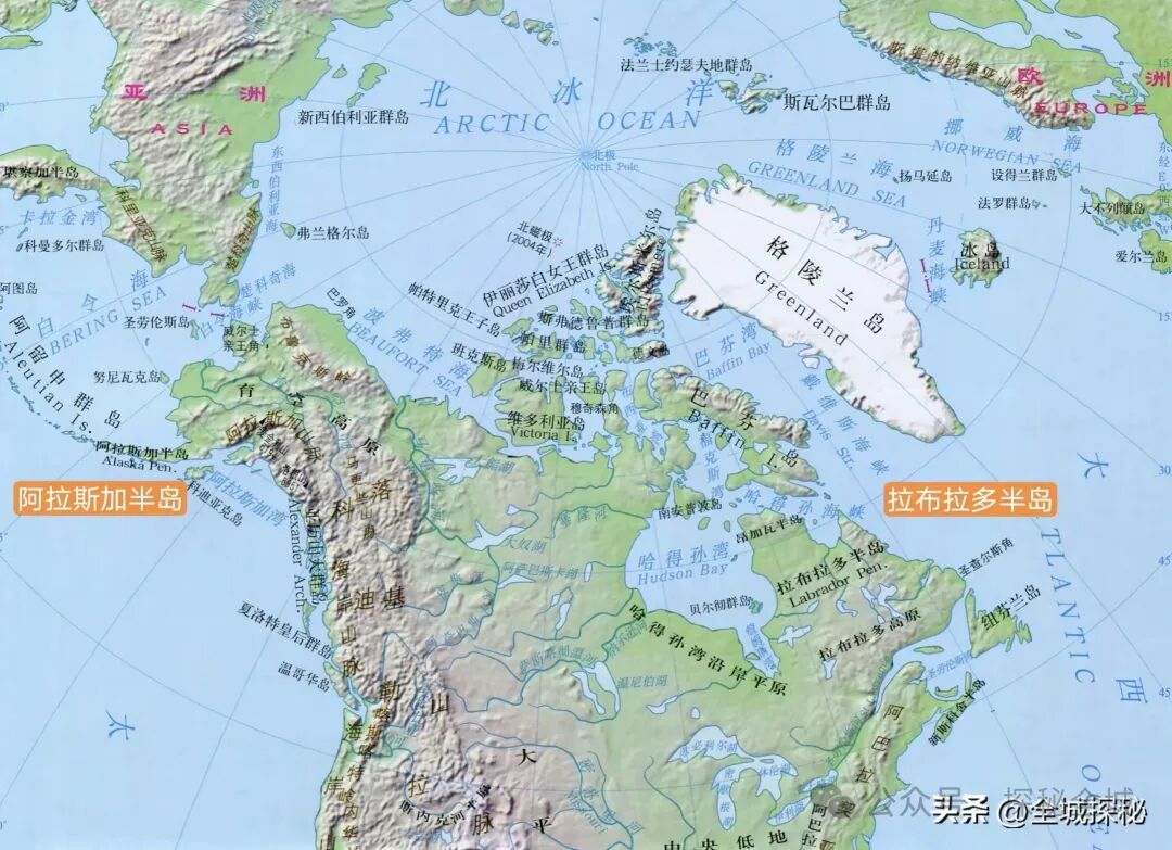 拉布拉多半岛和阿拉斯加半岛位置