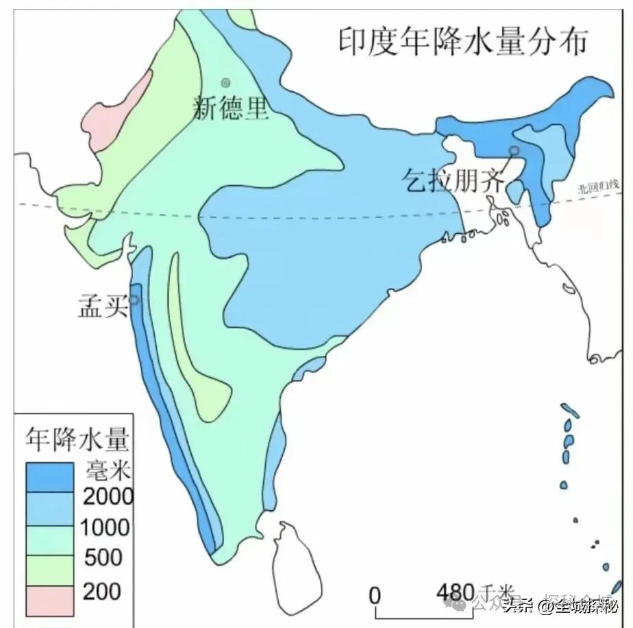 印度半岛大部分地区年降水量约800毫米