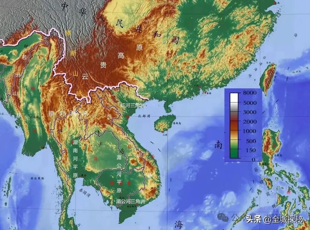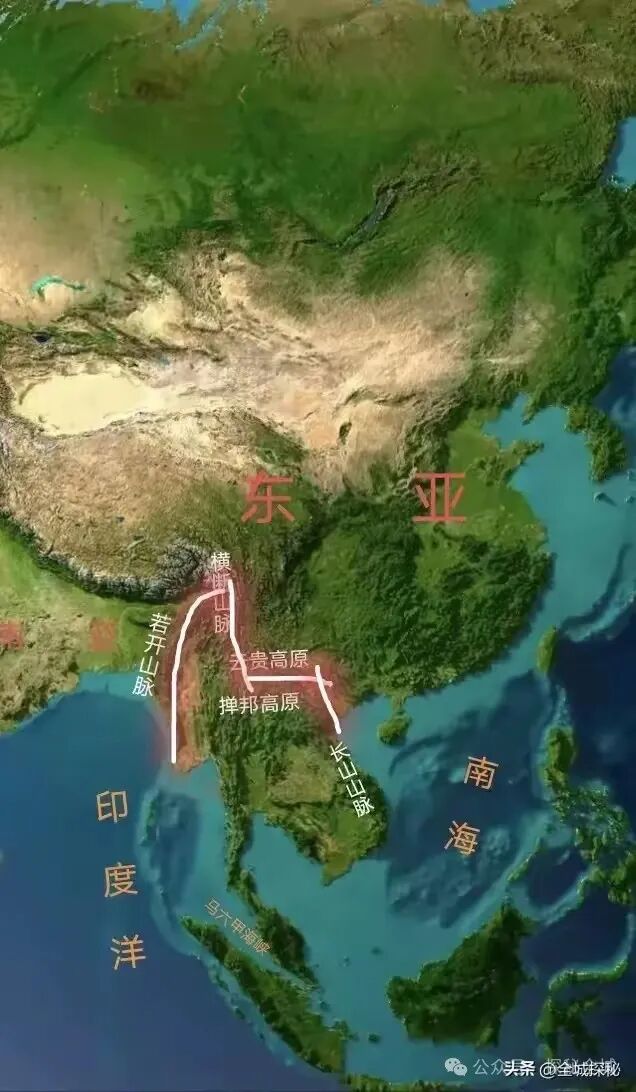 说道地形复杂程度,中南半岛其实远比另外两大半岛更甚,区域内山地高原遍布,比如若开山脉、掸邦高原、他念他翁山脉以及长山山脉等,都算是我国西南地区山地高原的附属部分;