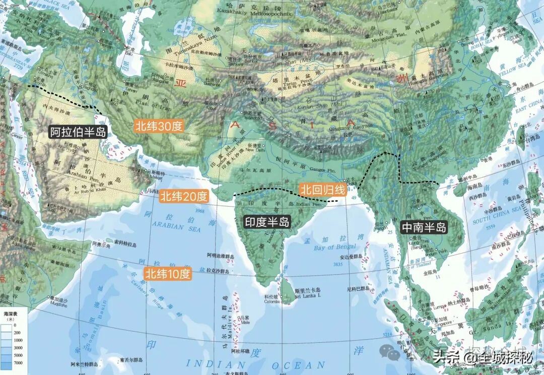 整体上来看,三大半岛都属于低纬度地区,即使是阿拉伯半岛最北端也处于北纬30度附近;