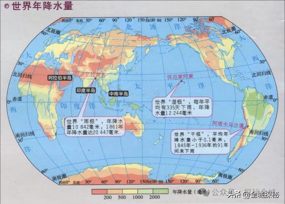 世界降水分布,三大半岛差异很大